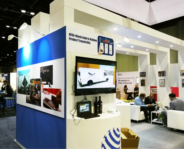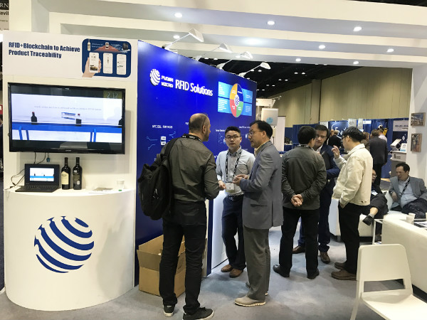 同時,結(jié)合產(chǎn)品的實(shí)際應(yīng)用場景,展臺也進(jìn)行了案例演示。觀眾對我司卓越穩(wěn)定的產(chǎn)品性能和綜合應(yīng)用解決方案有了全方位的了解。在跨境商品防偽溯源領(lǐng)域,我司展示了將PUF(物理不可克隆)防偽功能的RFID標(biāo)簽與區(qū)塊鏈結(jié)合的創(chuàng)新方案。參觀者在現(xiàn)場通過NFC手機(jī)掃描貼在產(chǎn)自加州納帕谷酒莊的紅酒上的RFID標(biāo)簽,就能接收到該酒的認(rèn)證信息,了解該酒的特點(diǎn)及完整的物流信息。據(jù)悉,這是全球首例將RFID與區(qū)塊鏈結(jié)合應(yīng)用于跨境商品流通的真實(shí)案例。