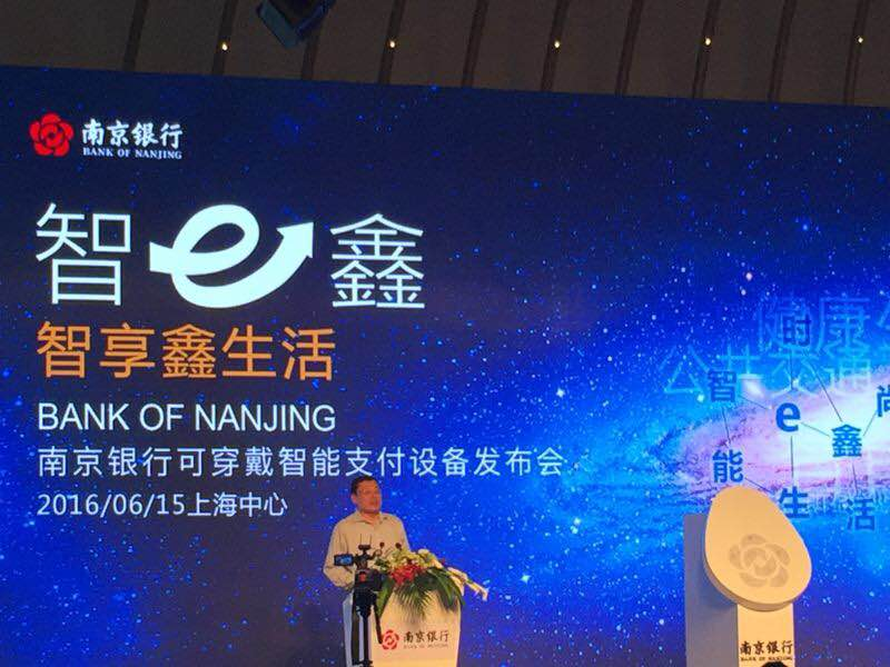 2016年6月15日,由南京銀行主創推出國內首款多功能、可穿戴智能支付設備——“智e鑫”,聯合上海公共交通卡股份有限公司于上海中心舉行新聞發布會?,F場宣布“智e鑫”正式對外發行,標志著用戶出行生活進入移動智能時代。今后,用戶穿戴一枚智能支付設備“智e鑫””,即可樂享銀行卡與交通卡雙重功能。