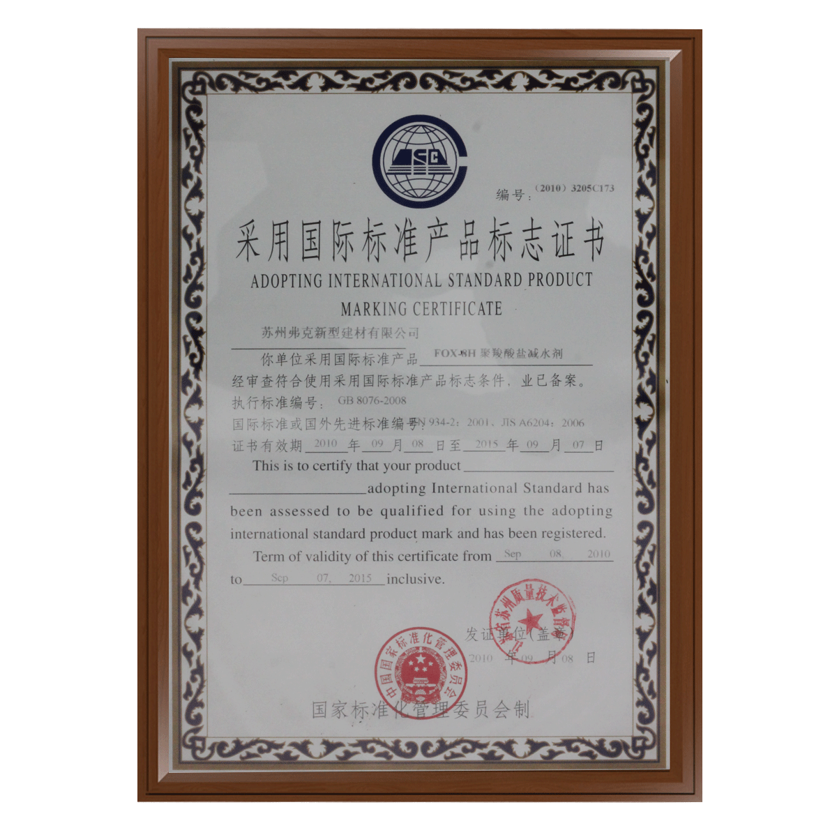 國際標(biāo)準(zhǔn)產(chǎn)品證書