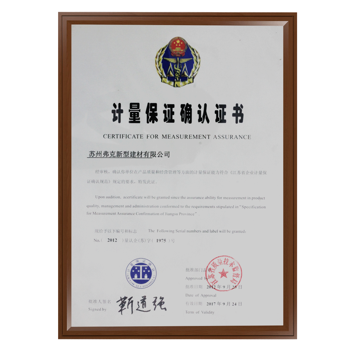 計量保證確認(rèn)證書